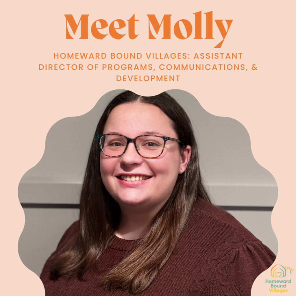 “I was inspired to be a part of an organization that creates an inclusive and connected community for those needing affordable housing,” Molly said when asked what about Homeward Bound Villages appealed to her.