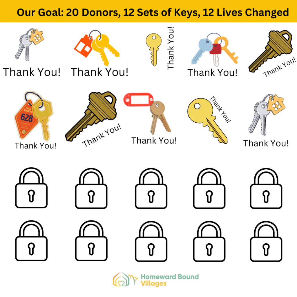 Our Goal: 20 Donors, 12 Sets of Keys, 12 Lives Changed