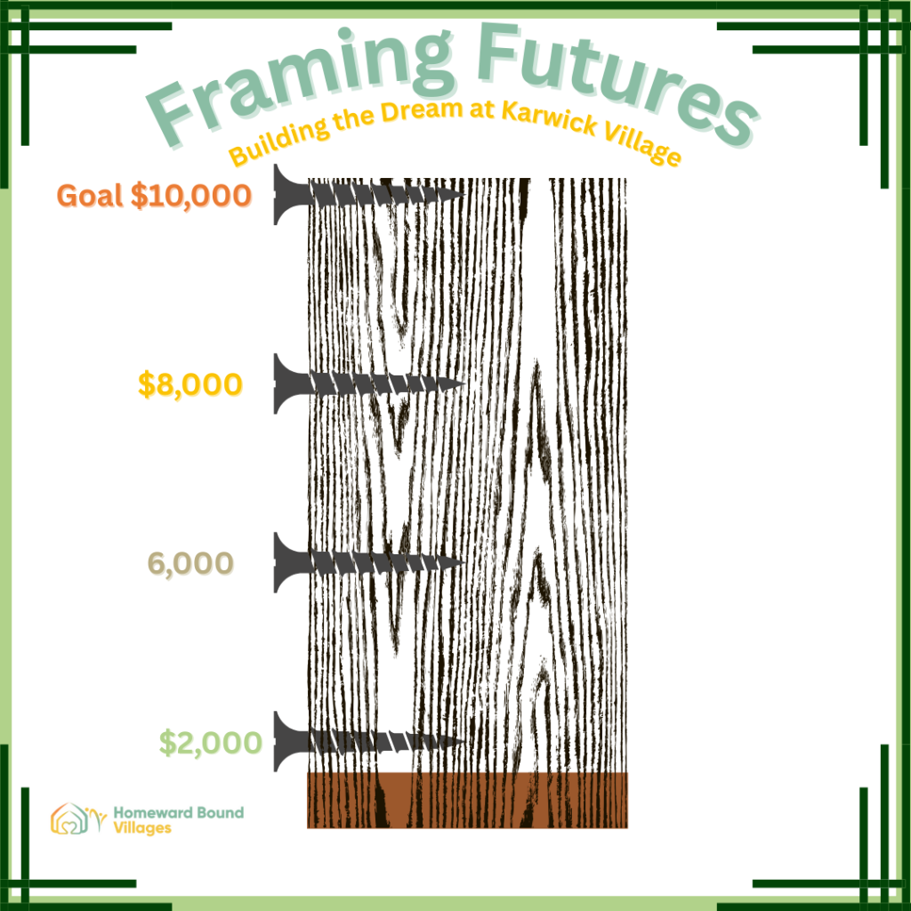 Every door, window, and wall framed represents stability, community, and a solution to our community’s affordable housing crisis. We need your help to continue this momentum at Karwick Village, and we invite you to be a part of this impactful project for our entire community. Our Framing Futures fundraiser kicks off today, and we are seeking community support to help us construct beyond the first three units at Karwick Village.